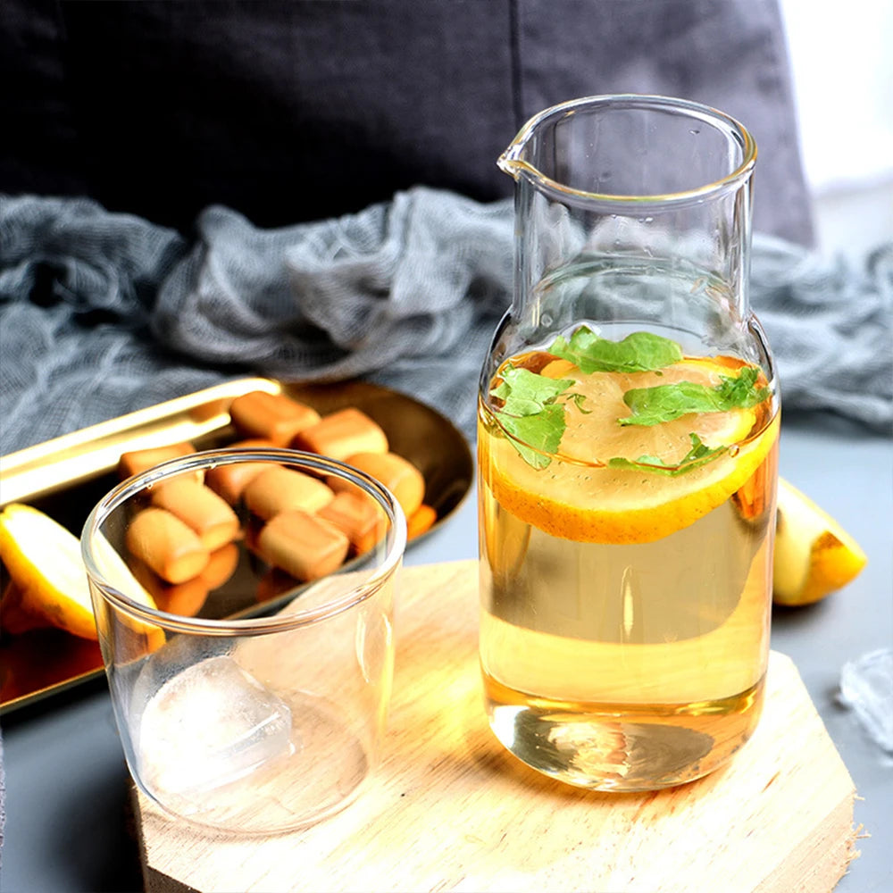 Water Carafe with Tumbler Glass Cold Hot Water Bottle Cup Sets Bedside Water Pitcher High Temperature Resistance Bottle