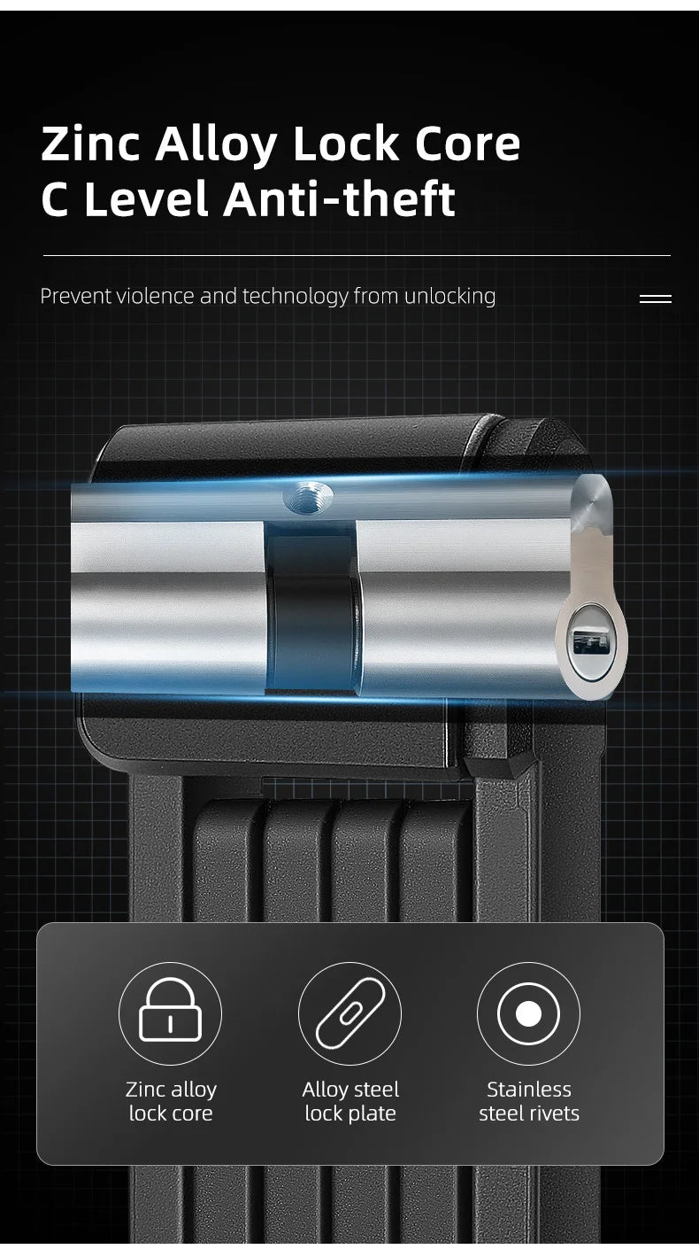 WEST BIKING Foldable Bicycle Lock Security Anti-theft Cycling Lock MTB Road Bicycle Accessories Scooter Electric Bike Chain Lock