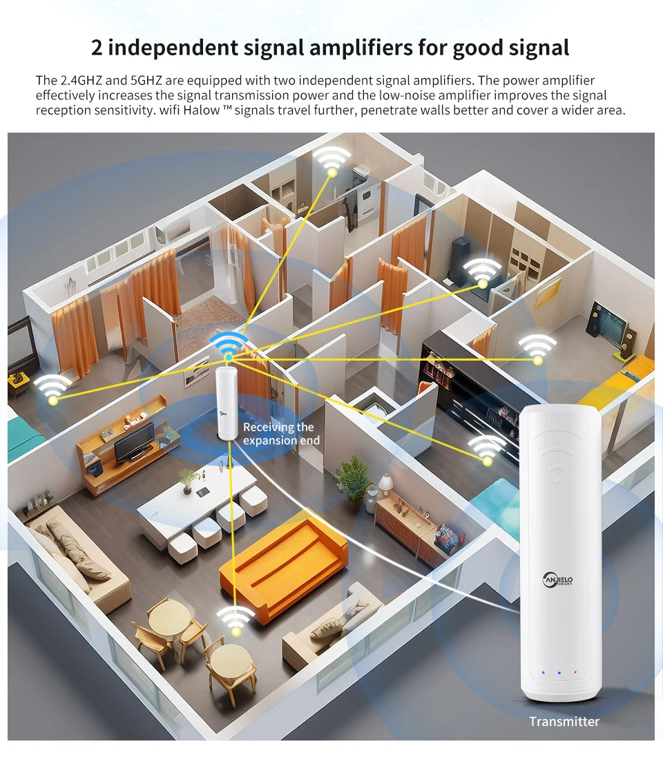 WiFi Halow Extender Amplifier 800M Long Distance High Performance Stable Suit for Home Office Outdoor Farm Portable