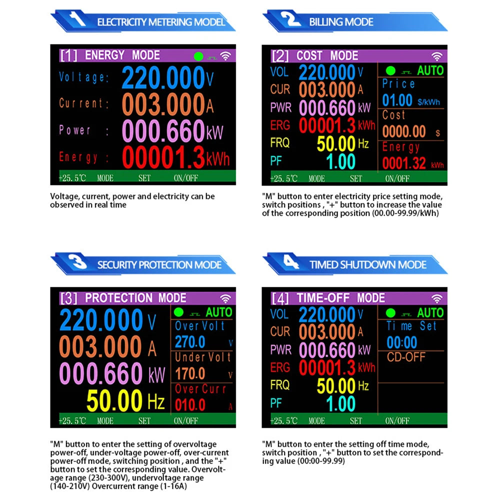 WIFI Smart Wattmeter Digital Power Meter Electricity Consumption Energy Meter Voltage Current Protection EU Plug Timer Switch