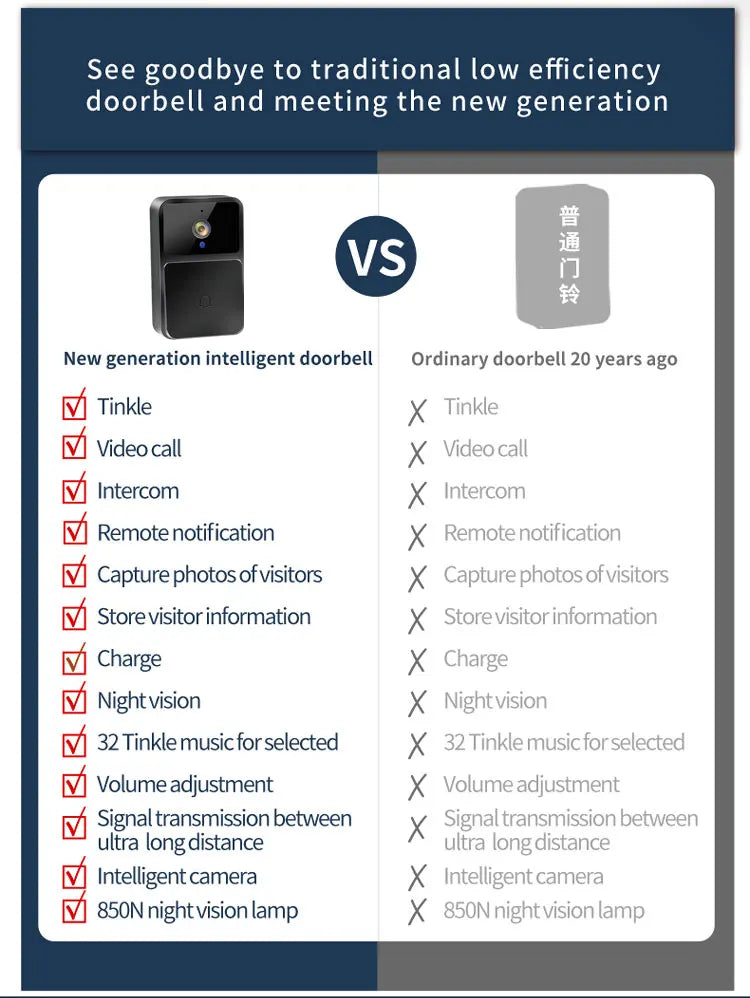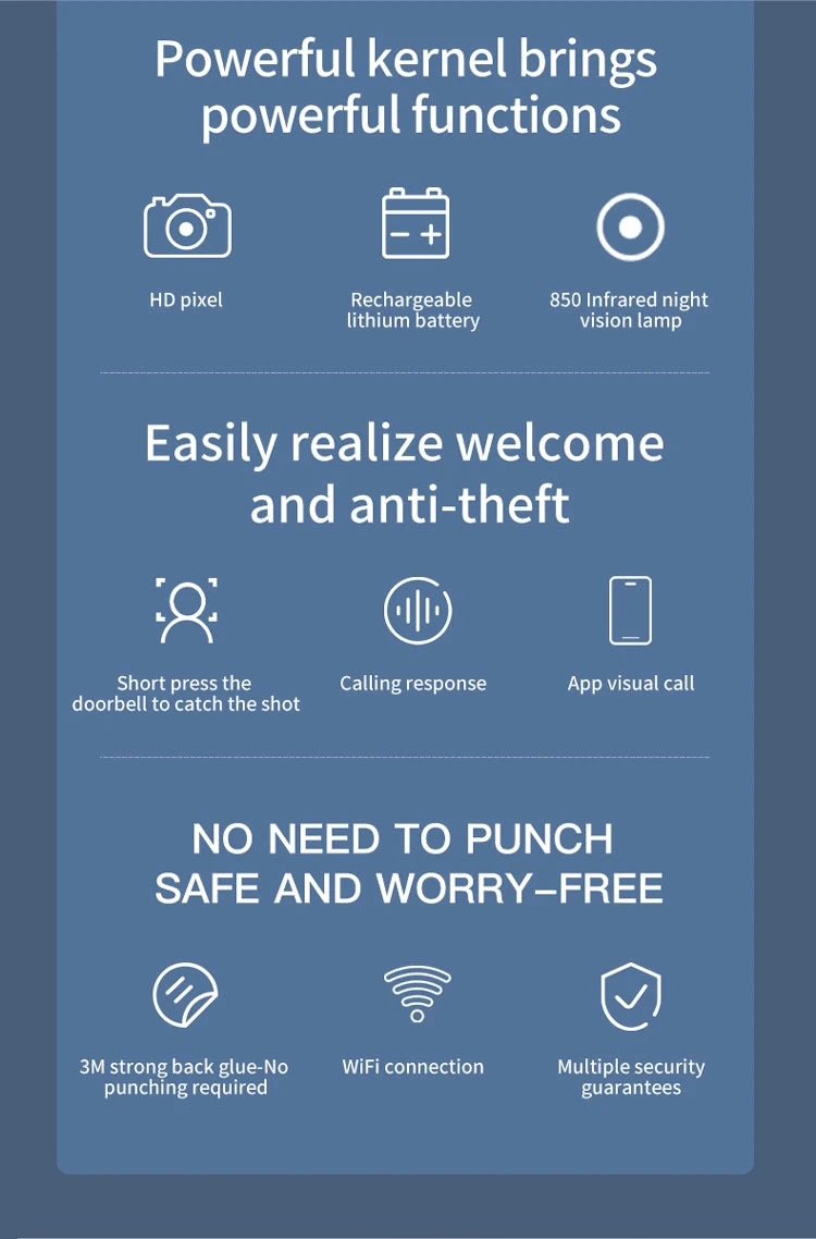 WIFI Video Doorbell Camera Night Vision HD Wireless Smart Home Security Battery Door Bell Two Way Intercom Voice Change For Home