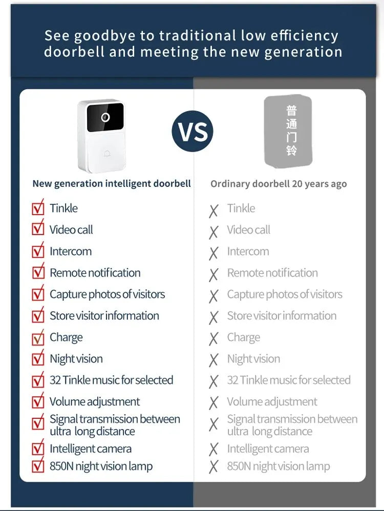 WIFI Video Doorbell Camera Wireless Night Vision Smart Home Security HD Door Bell Two Way Intercom Voice Change For Home