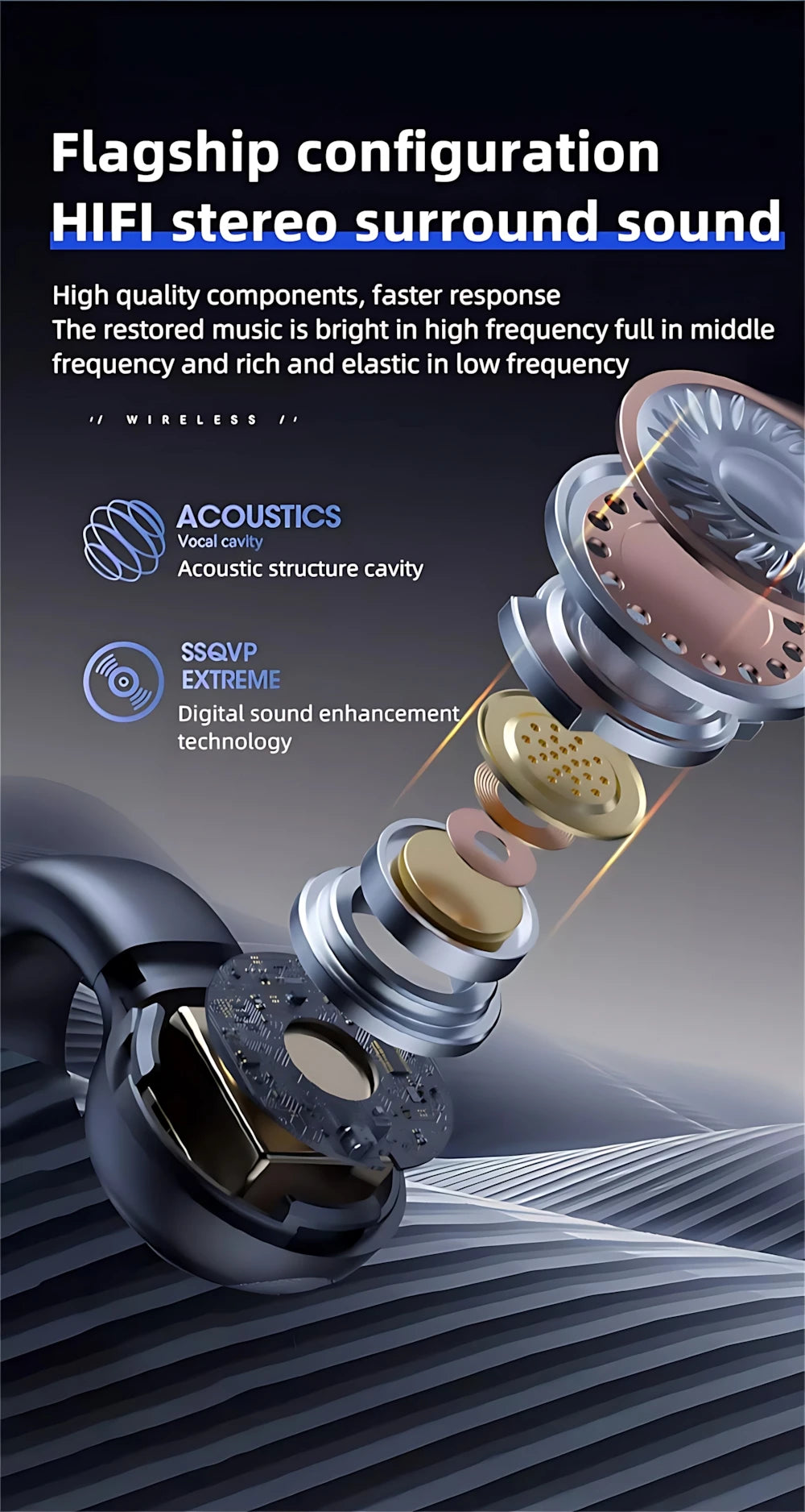 Wireless Headphones Fone Bluetooth Headset With Mic Handsfree Noise Canceling Earphones Clip Ear Music Sports Gaming Earplug