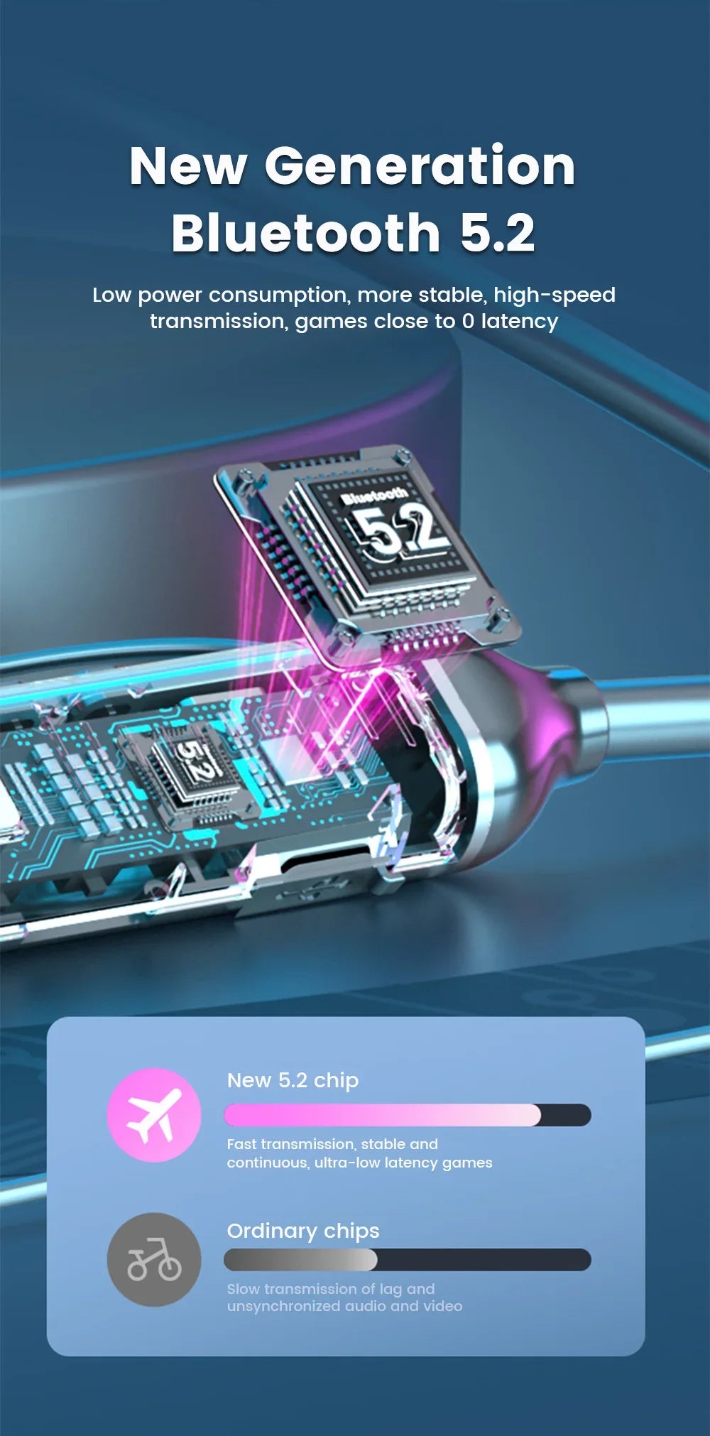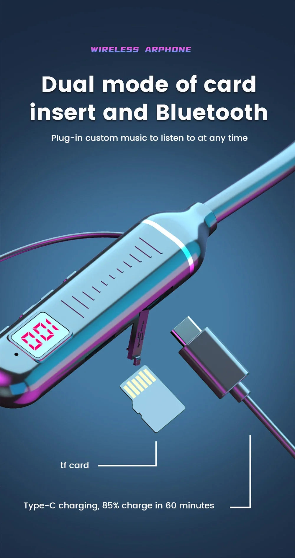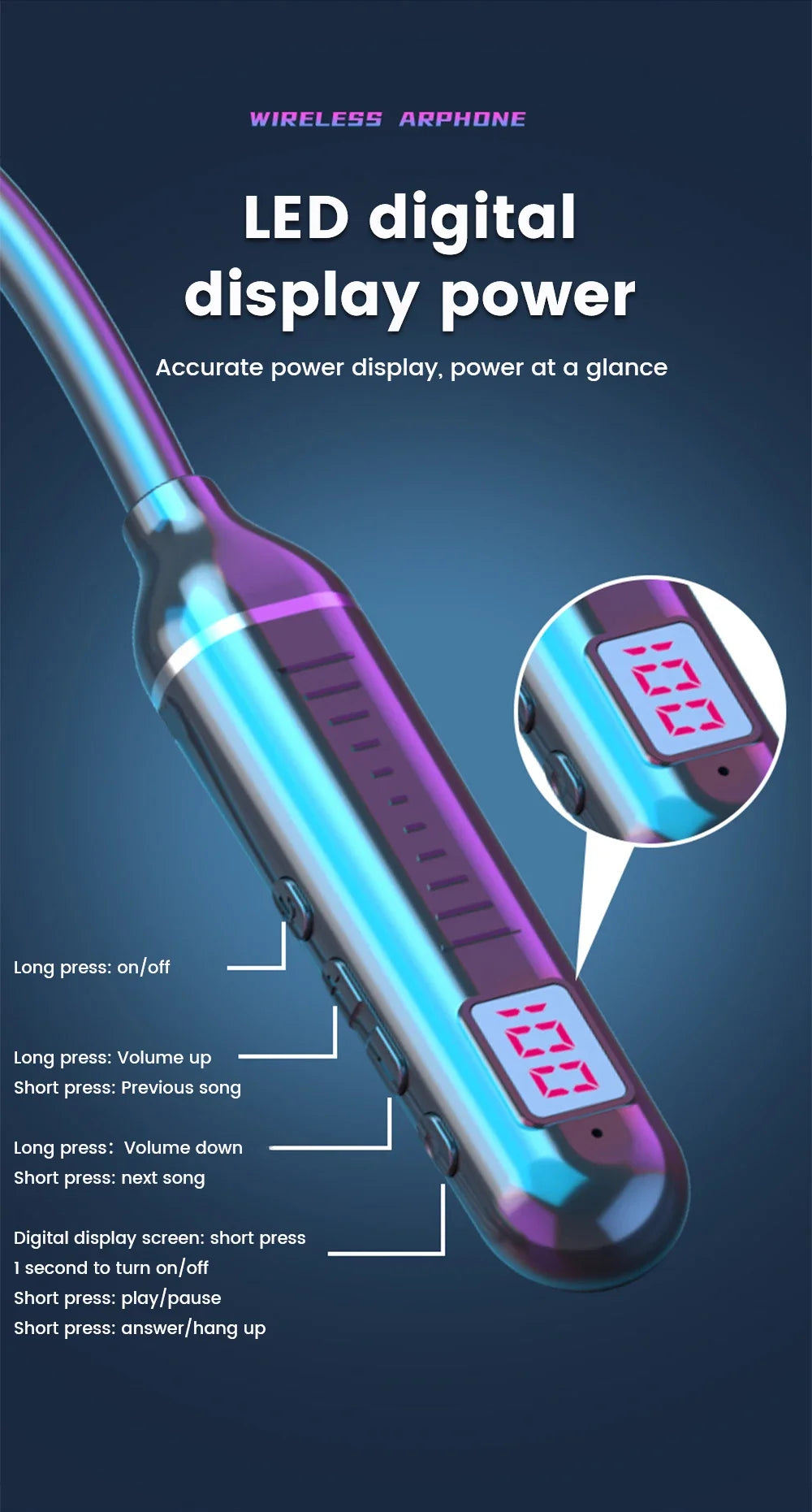 Wireless Headset 5.3 Neck Strap Headset Gaming LED display Stereo Sports headset with magnetic earbuds
