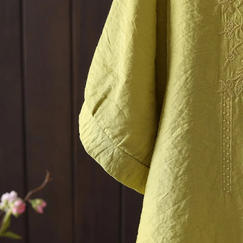 Women Clothing Streetwear Casual Fashion Elegant Cotton Linen Embroidery Vintage Clothes Tops Shirts for Women Tees