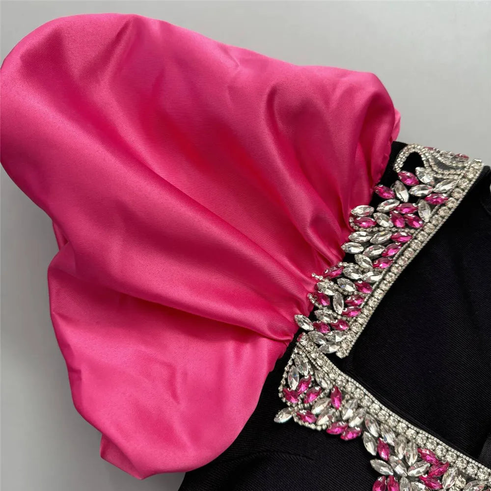 Women Elegant Puff Sleeve Bandage Dress Sexy Beading Bodycon Clothes Celebrity Party Evening Maxi Dresses