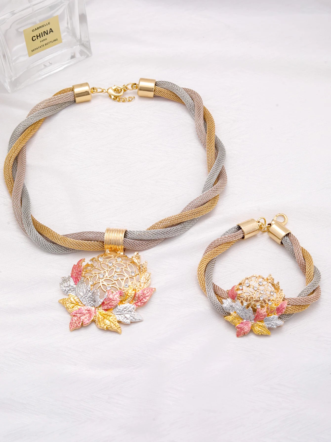 Women Multicolour Jewelry Set 18K Gold Plated Necklace Set Wedding Bridal Fashion Tassels Necklace Earrings Ring Gift