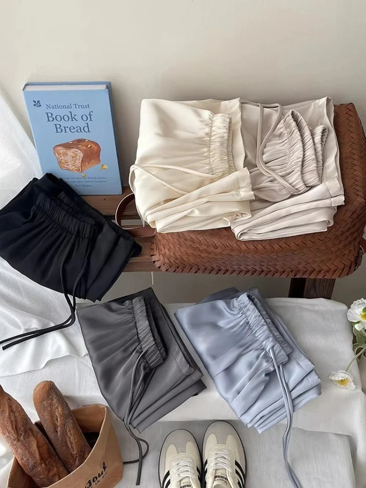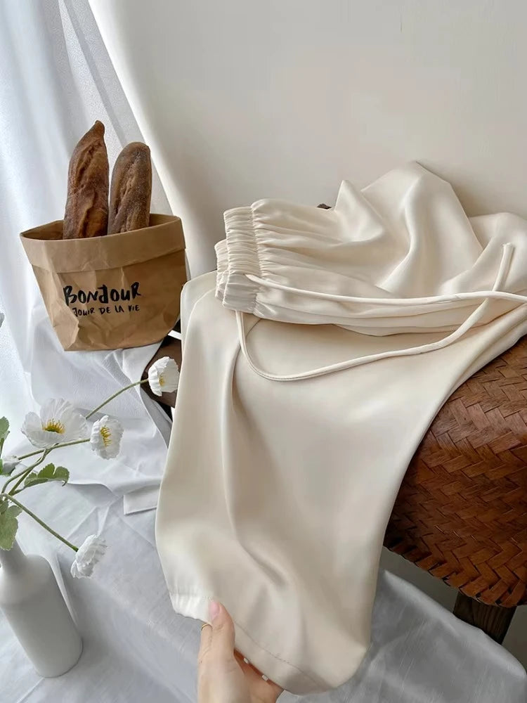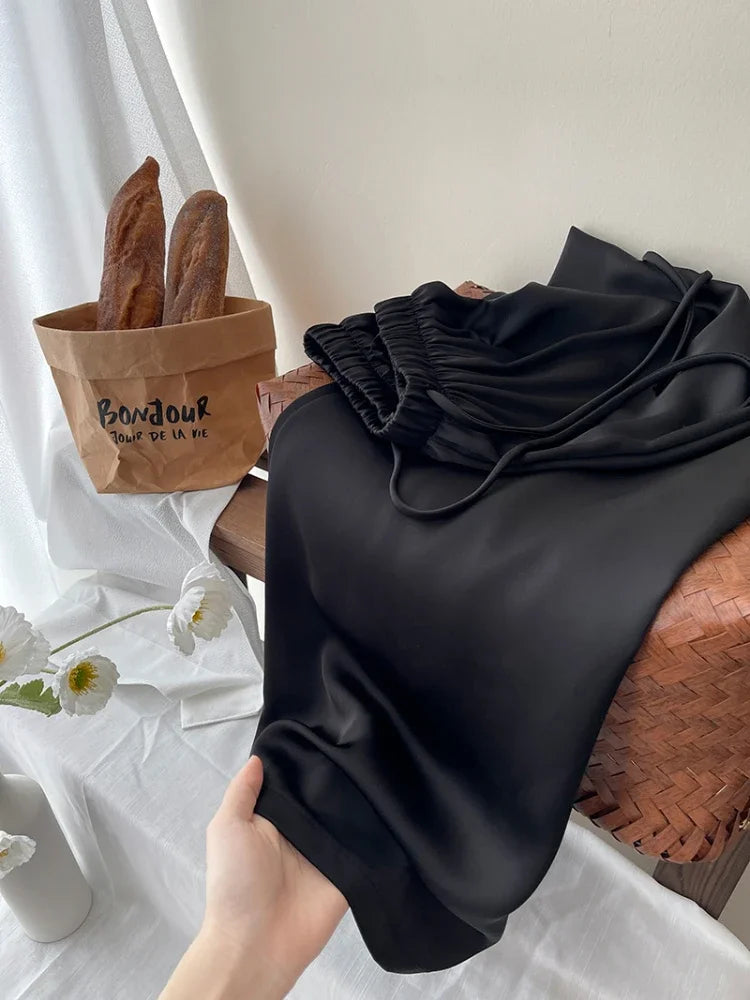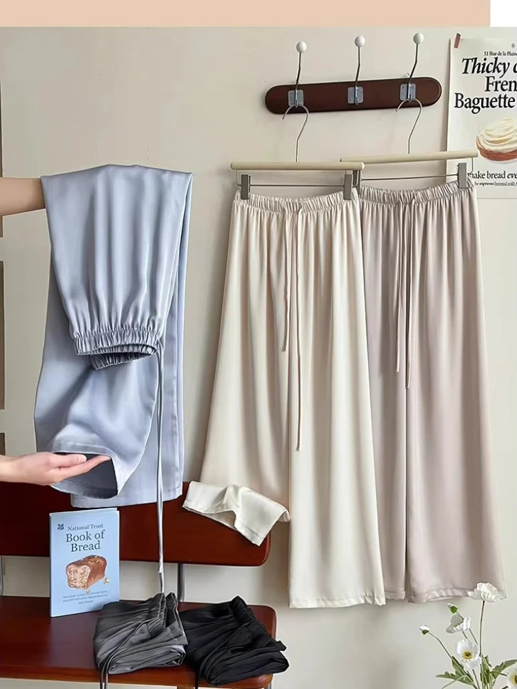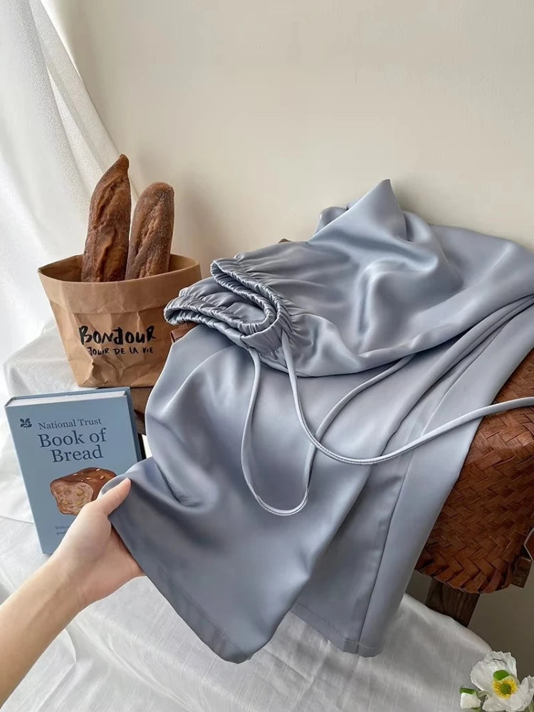 Women’s Satin Wide Leg Pants High Waist Drawstring Palazzo Pants for Work, Lounge, or Casual Wear