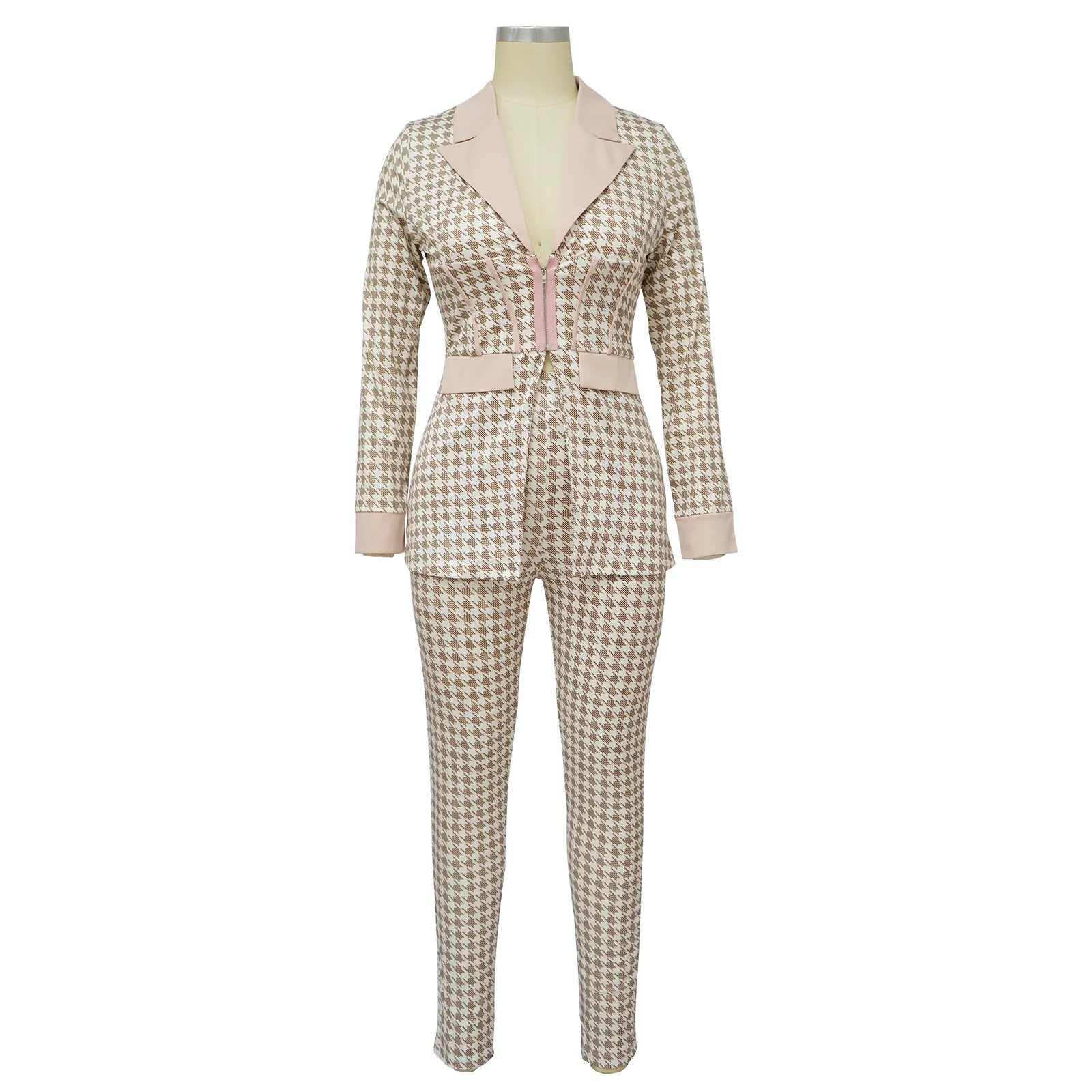 Women Two Piece Sets Outfits Elegant Tweed Slim Long Trousers Short Coat Tops Lady Clothes Formal Business Office Work Suits