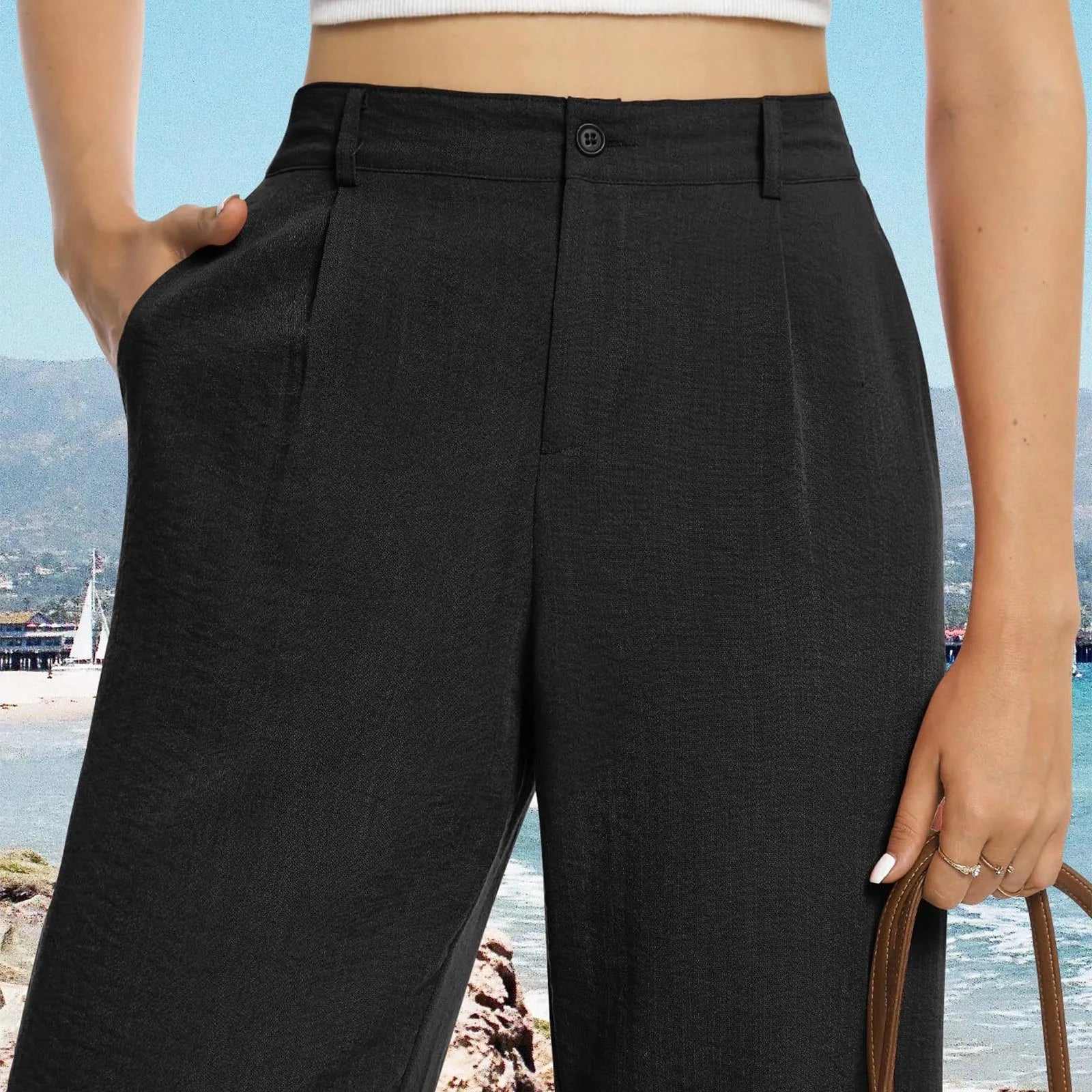 Womens Casual Wide Leg Pants High Waisted Button Down Straight Long Trousers Palazzo Pants Elegant Woman Flared Pants Youthful