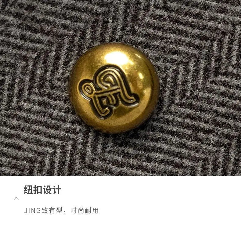 Women's Office Woolen Suit Jacket for women 2025 New Autumn Winter Chic gray Herringbone pattern Suit Female Thick Casual Coat