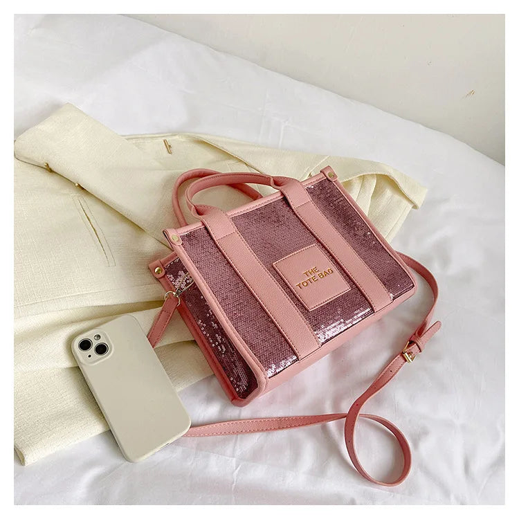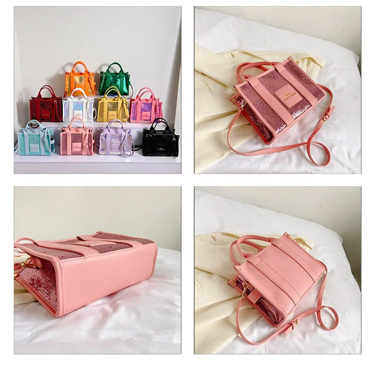 Women's Tote Bag Sequin Shoulder Bag PU Leather Large Capacity Luxury Designer The Tote Bag For Women Crossbody Bags 2024 New