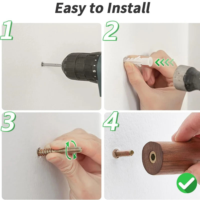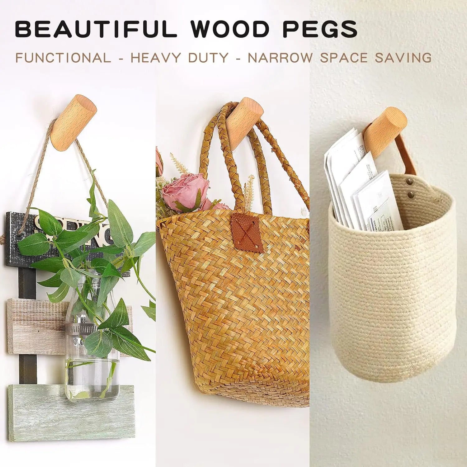 Wood Wall Hooks, Natural Wooden Coat Hooks Wall Mounted, Handmade Rustic Hat Hooks Heavy Duty for Hanging Towels, Clothes, Bags