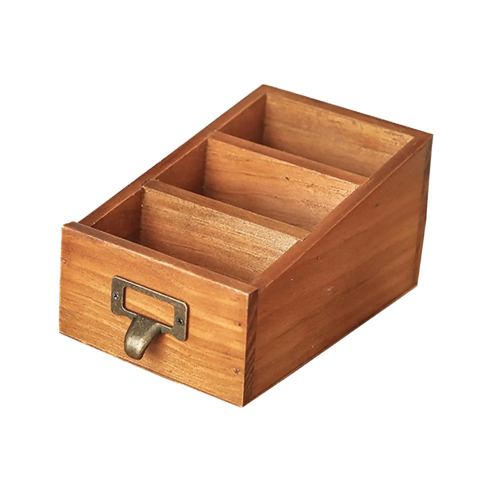 Wooden Desktop Organizer Keys Durable Mini with 3 Compartments Office Accessories for Home Bedroom Vanity Bathroom Countertop
