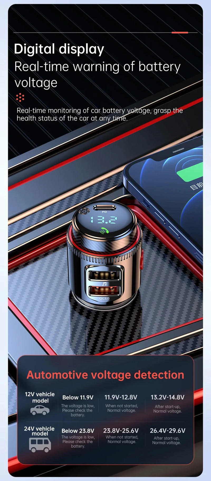 Xiaomi 2025 New PD30W+QC Bluetooth 5.4 Car MP3 Player FM Transmitter Wireless Handsfree U Disk Play USB Car Fast Charge Adapter