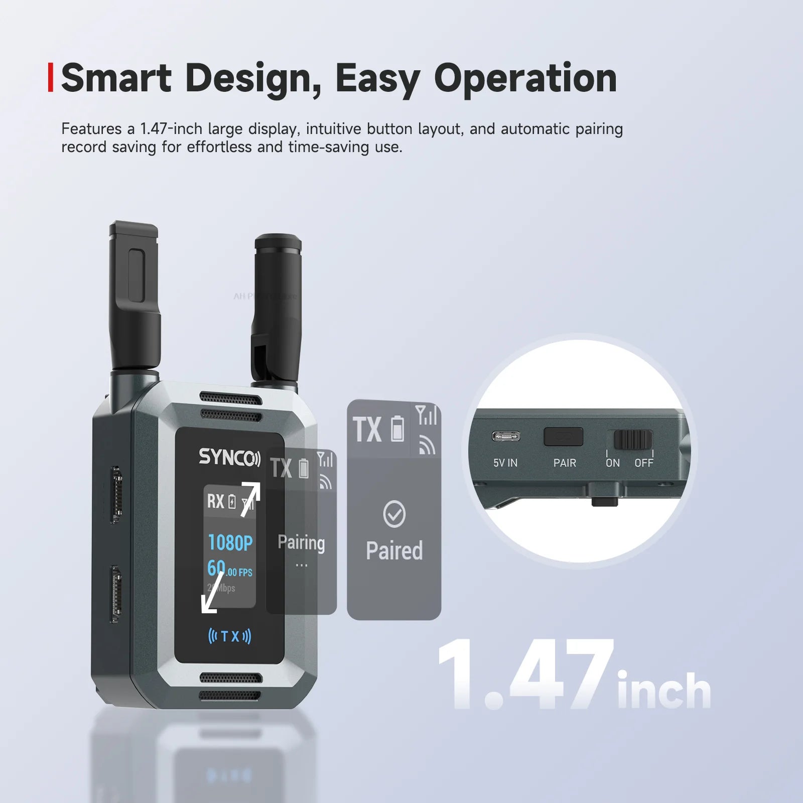 Xvison HD Wireless Video TX&RX 1080P60 UVC Streaming, 80ms Low Latency, Zero Noise for Camera/Smartphone/PC Live Streaming Synco