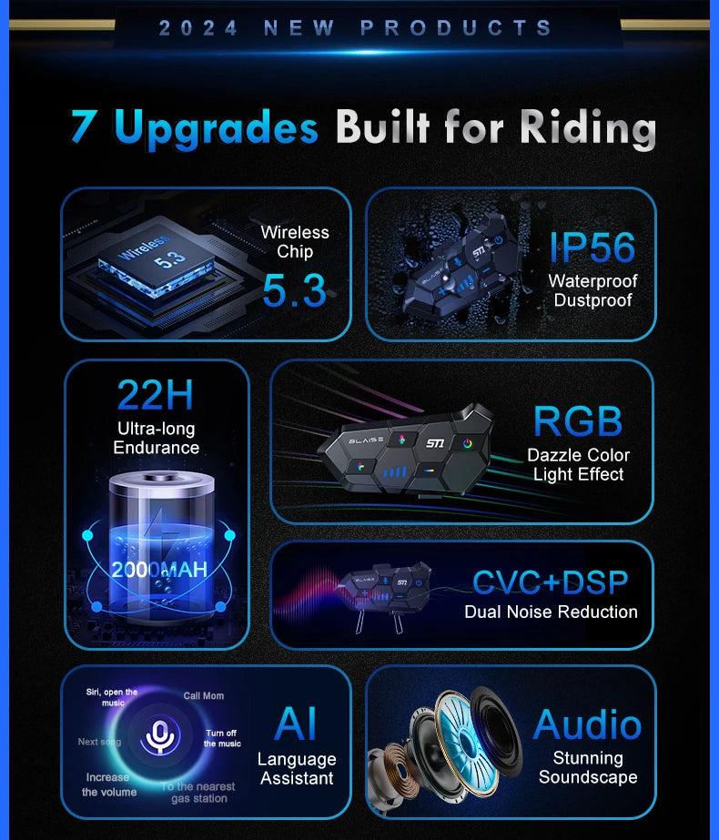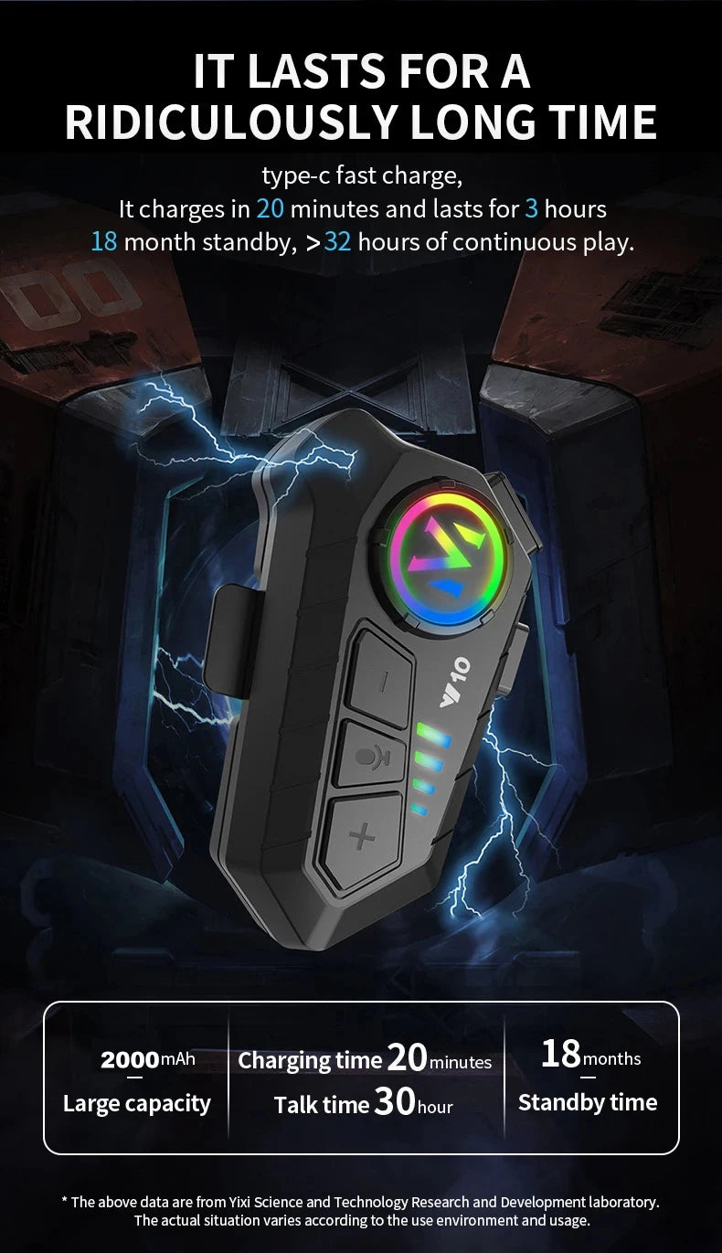 Y10 Motorcycle Helmet Bluetooth Headset 2000Mah Super Long Standby Wireless Hands-free Waterproof Motorbike Earphone