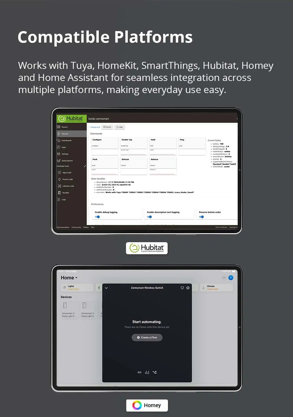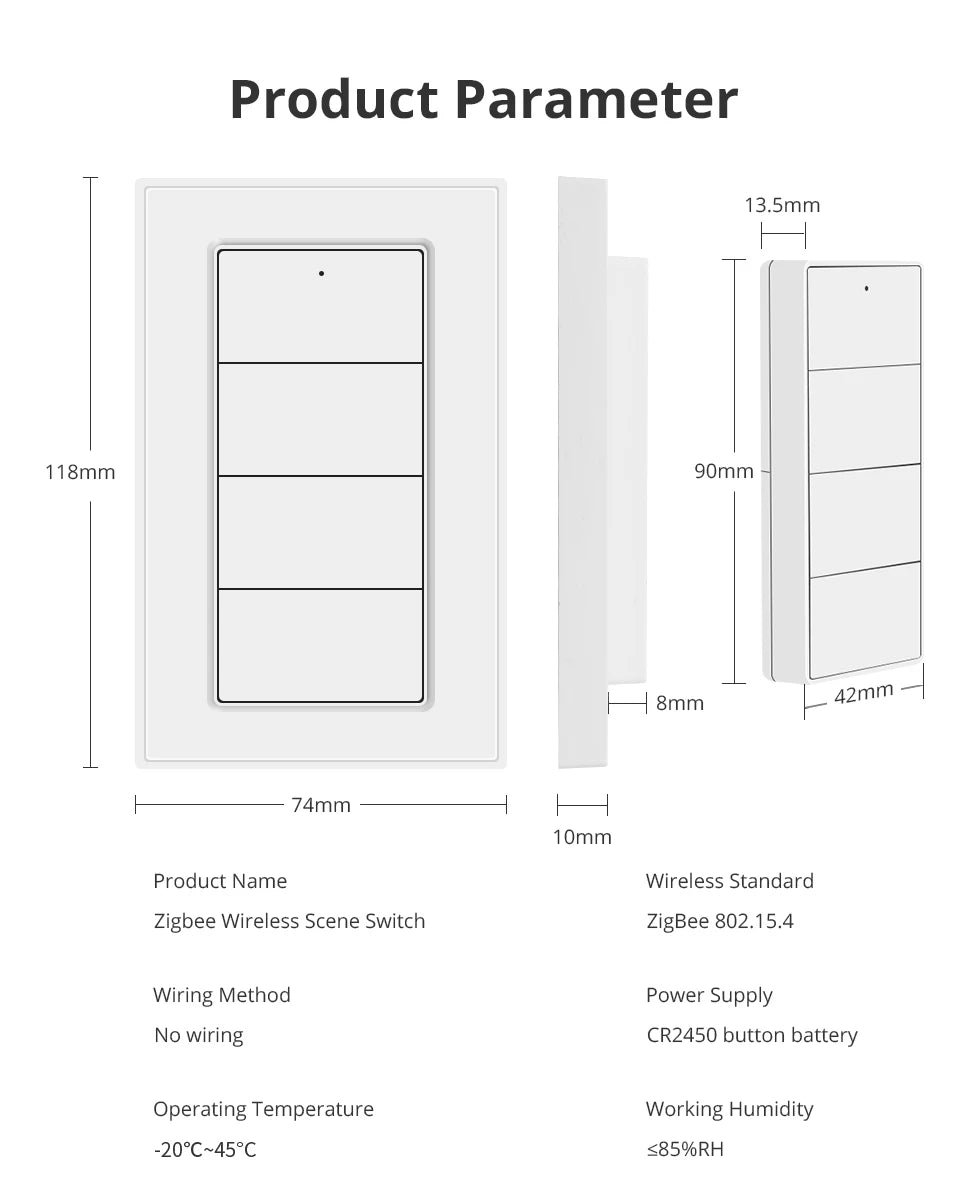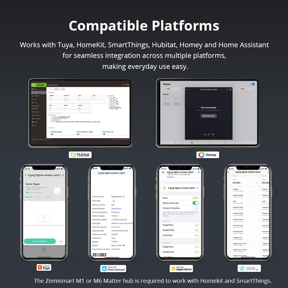 Zemismart 4-Gang Zigbee Wireless Scene Switch,Battery Powered, Compatible with Tuya Home Assistant Homey Hubitat (Hub Required)